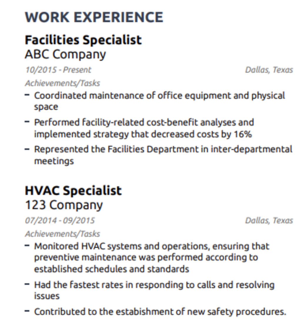 To help you build your own winning facility maintenance resume, let’s cover each of these sections.