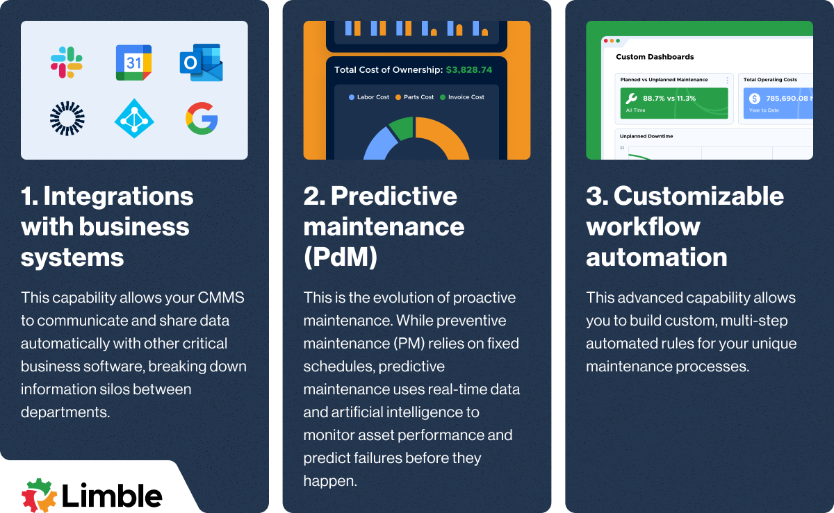 Once you have a strong foundation with the essential features, advanced capabilities can unlock the next level of operational efficiency and strategic insight. These features are designed to integrate your maintenance program more deeply into your overall business operations, automate complex processes, and leverage data in more powerful ways. They are the tools that separate best-in-class maintenance teams from the rest.