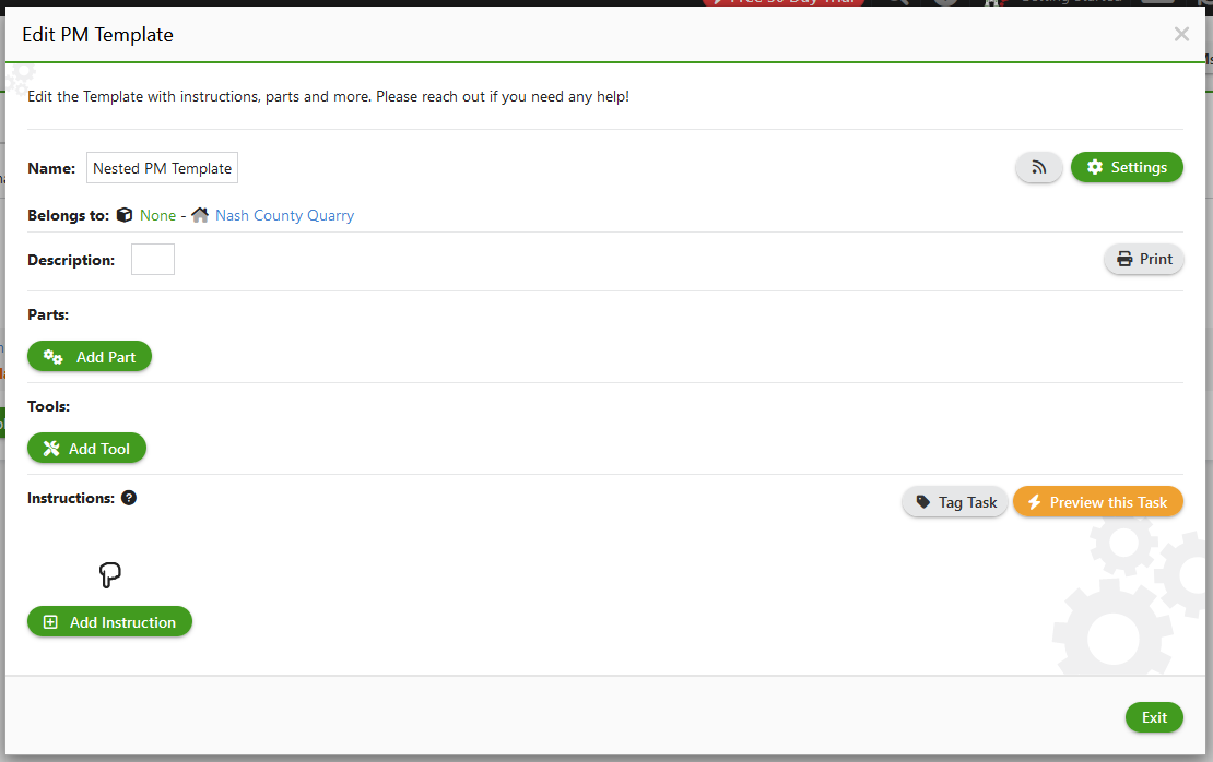 This way, you can nest your Weekly PMs under Monthly PMs, Monthly PMs under Quarterly PMs, etc. Since each PM comes with its own Parts and Instructions, Limble will still track all of that for you in the background.