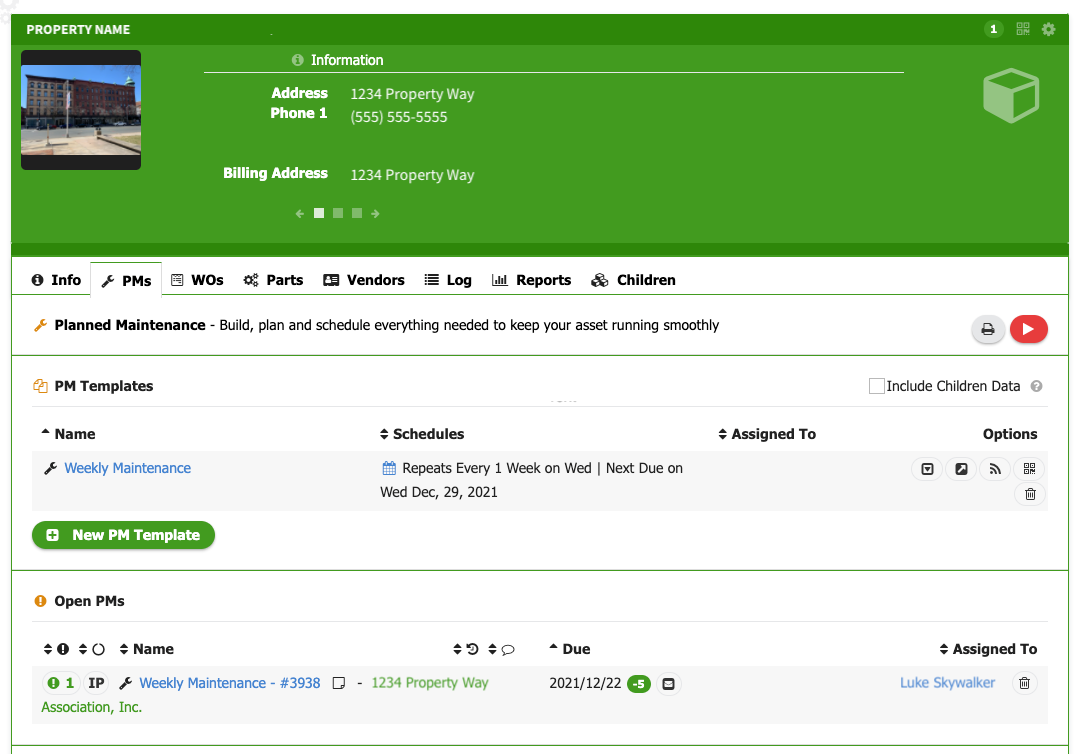 Within Limble, each property would be considered a “location,” each building would be a “parent asset,” and each unit, a “child asset.”