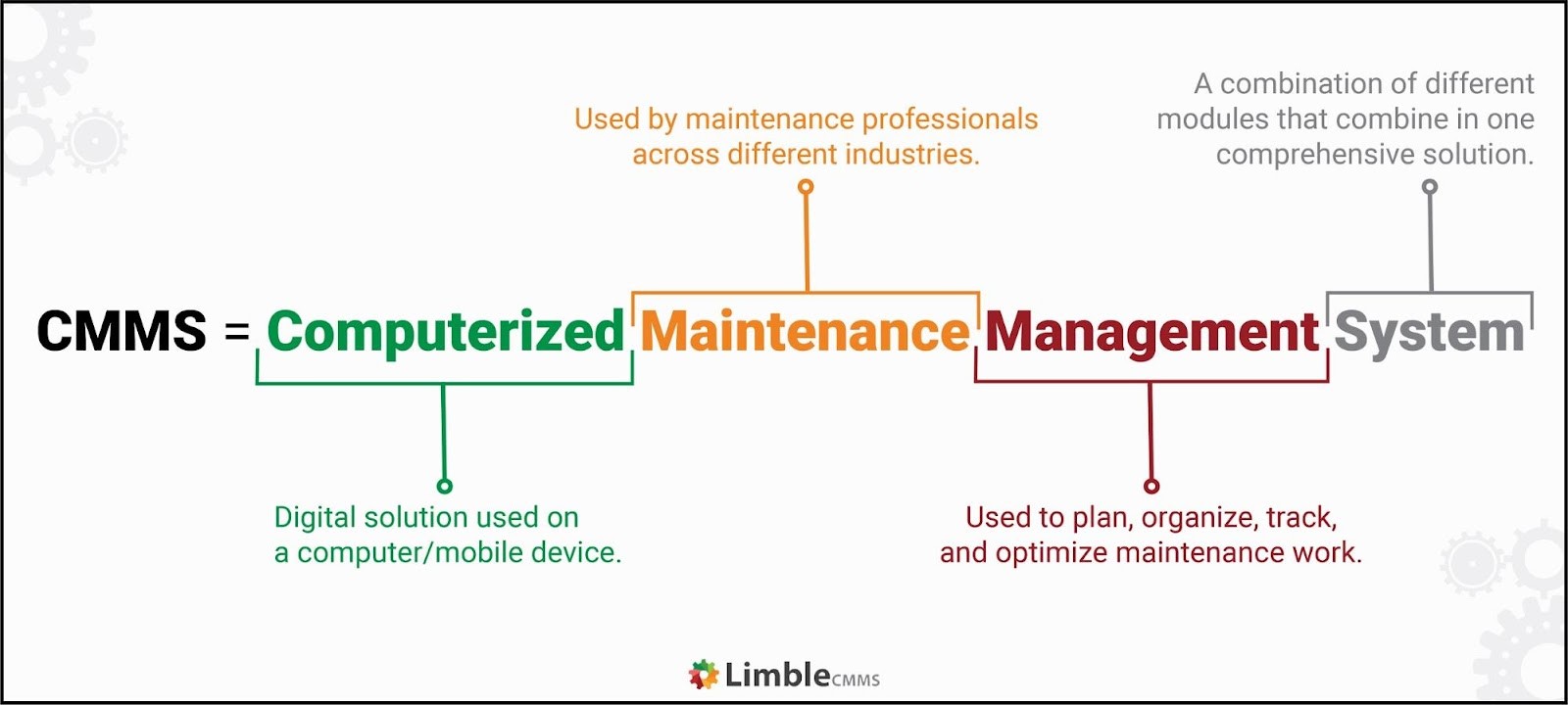 When we talk about manufacturing maintenance systems, we are talking about Computerized Maintenance Management System (CMMS). CMMS systems help businesses manage, automate, and streamline all of their maintenance operations.